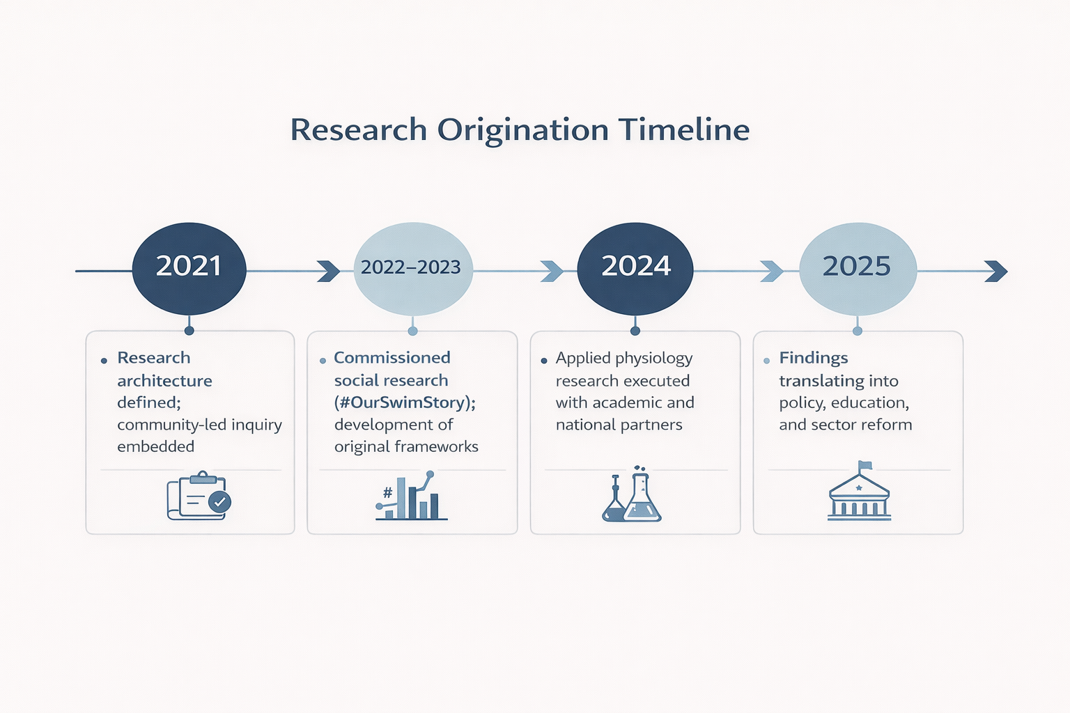 Commissioned large-scale social research into aquatic behaviours, barriers, and lived experience. Development of original research constructs, including readiness scales and risk indices, to translate insight into usable evidence.